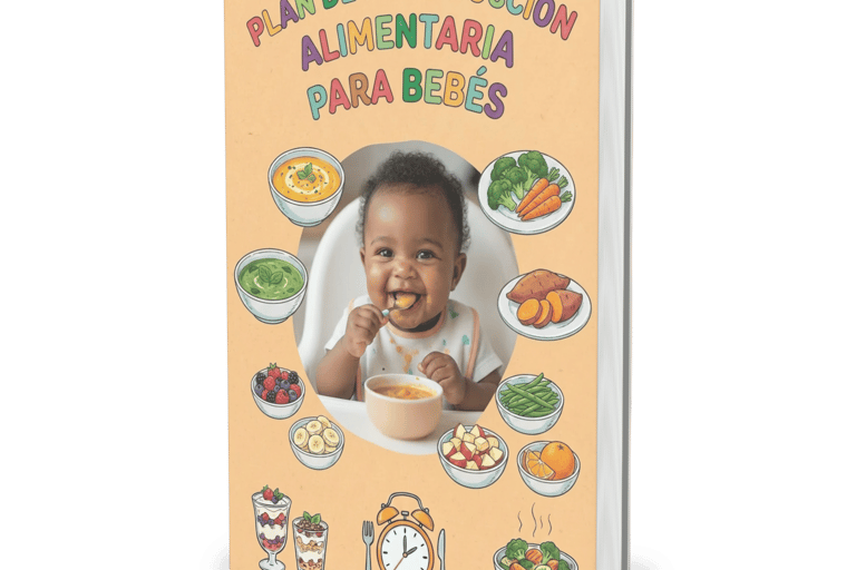 Recibirás un ebook completo con recetas y guías prácticas para apoyar una alimentación segura y variada, organizado por etapas para bebés y niños (de 6 meses a 5 años).